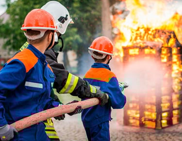 Formação e treinamento de brigada de incêndio para rede de supermercados com 12 unidades, incluindo simulados práticos.